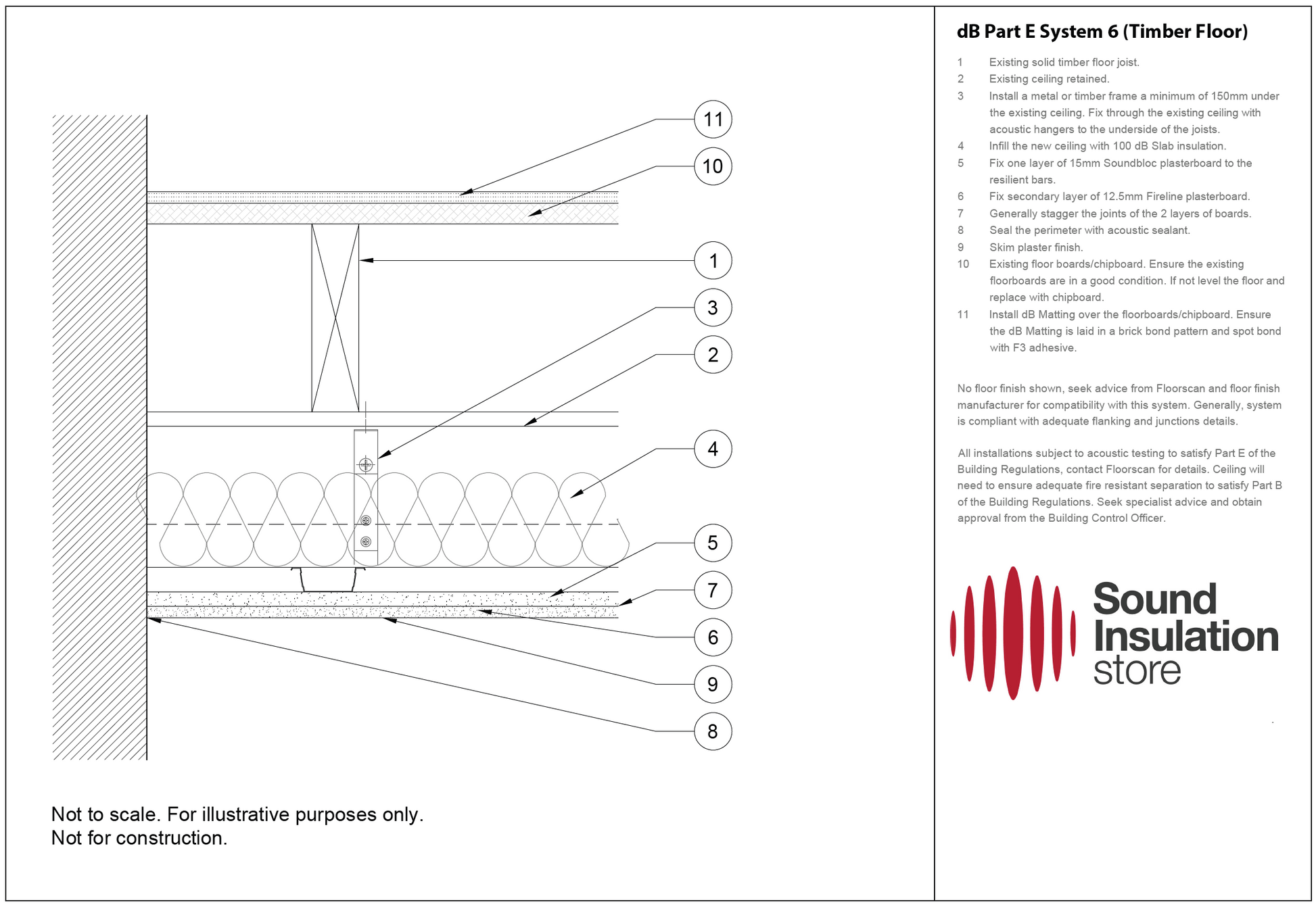 The dB Part E System 6 is for an existing or conversion property with a timber floor structure. This is your typical existing timber floor specification for UK buildings.
